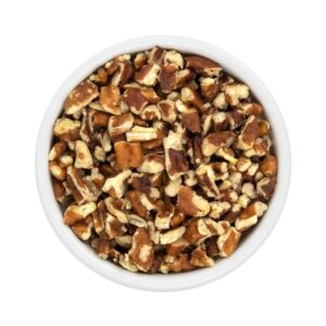 Pecan Halves, Sugar, Canola Oil, Spices (Bourbon, Salt). Packaged in the same facility as peanuts, tree nuts, soy, sesame, and milk products.