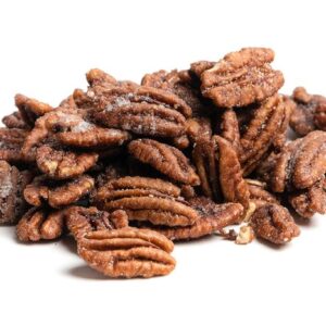 Make it a double (order of our Bourbon Pecans, that is)! These non-GMO, terrific-tasting pecans are a sweet and fancy twist on the classic candied nut. Each buttery pecan is caramelized in sugar and a splash of real bourbon, making them smoky and sweet with just a warm hint of bourbon flavor. For extra crunch and toasty taste, toss them over a bowl of ice cream, plain granola or yogurt.